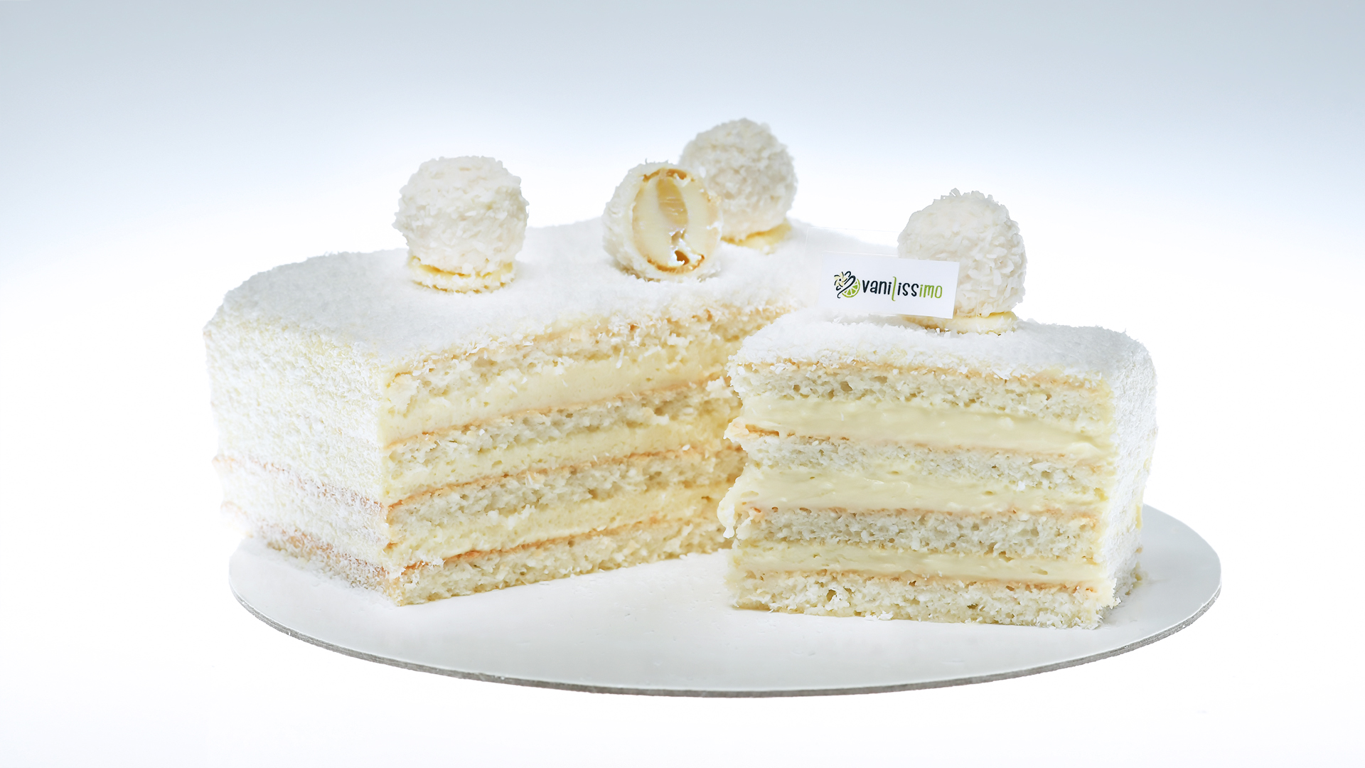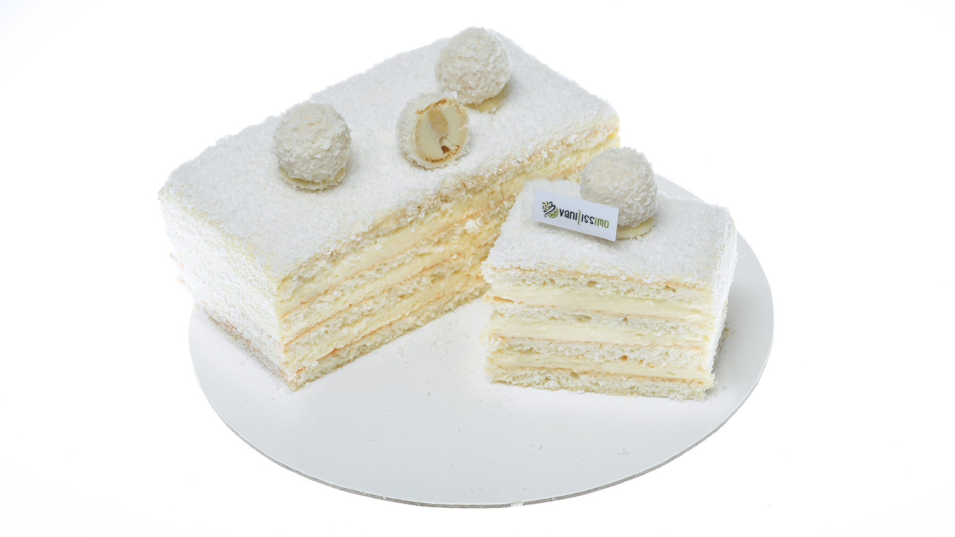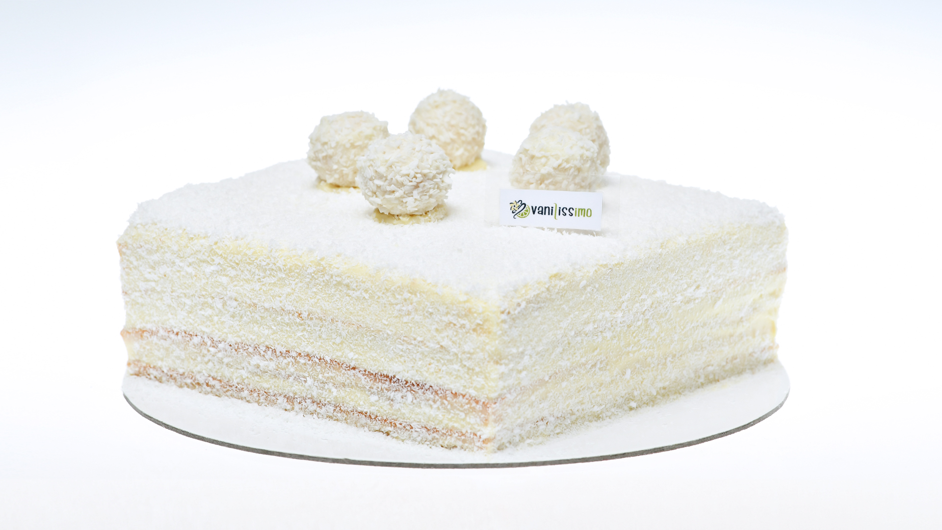 Un tort complet alb cu o crema de cocos intensa si un blat de cocos insiropat imbracat in valuri de fulgi de cocos. Recomandat cu un vin rose fructat sau un pahar de sampanie roz (pentru copii).